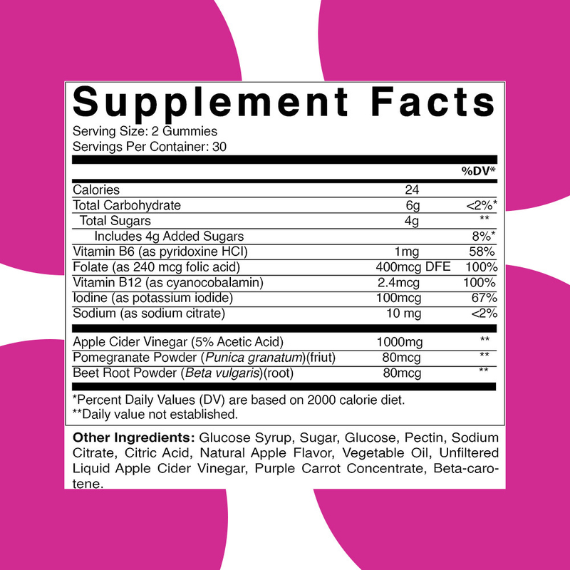 سرکه سیب، ویتامین B6، فولات، ویتامین B12، ید، سدیم، پودر انار، پودر چغندر