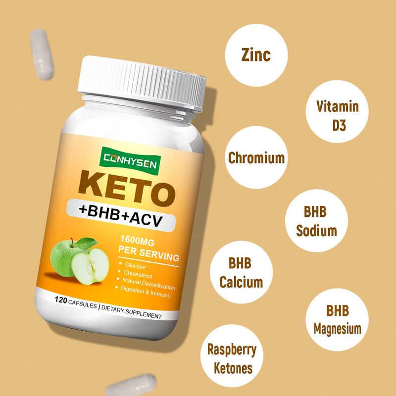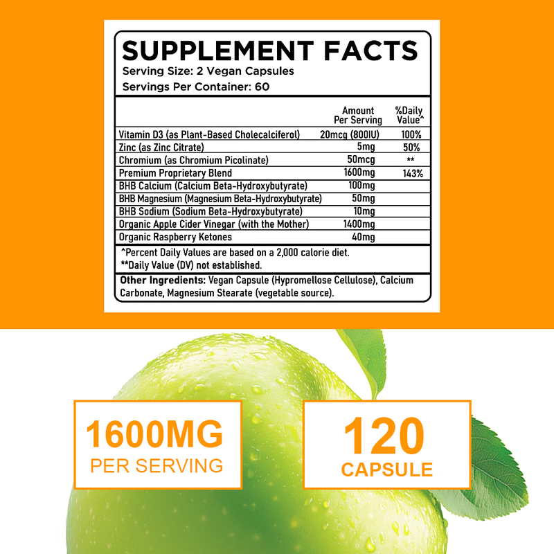 سرکه سیب ارگانیک، ویتامین D3، روی، کروم، مخلوط اختصاصی برتر، BHB کلسیم، BHB منیزیم، BHB سدیم، کتون های آراد ارگانیک