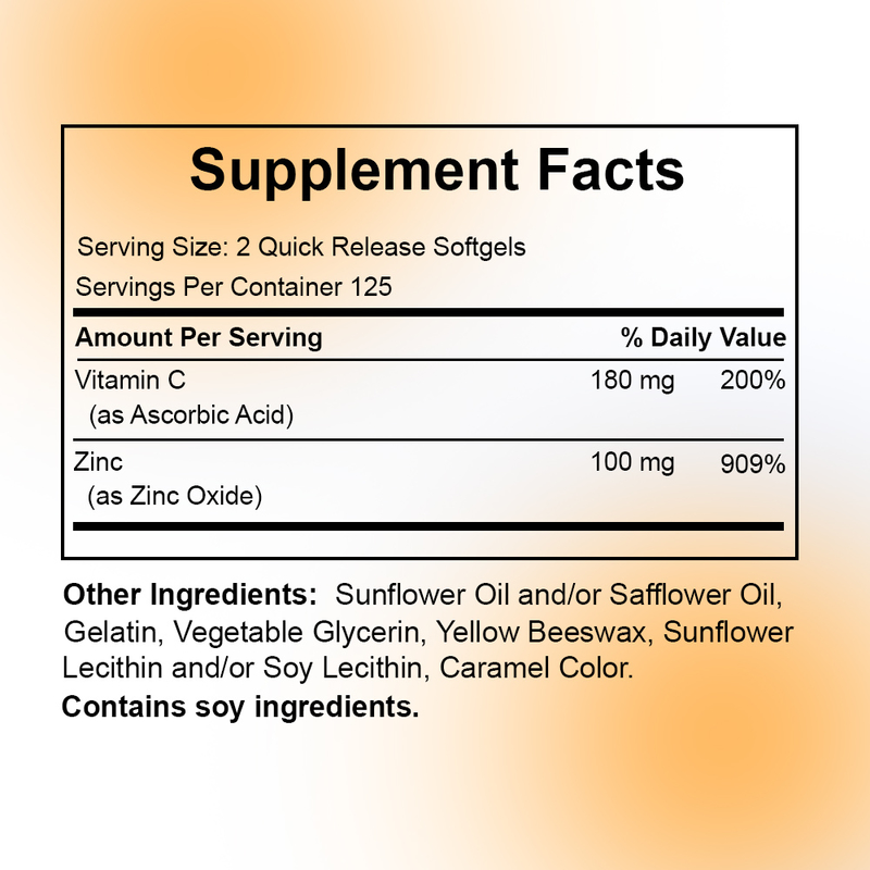 ویتامین C ژل های نرم با روی قیمت عمده فروش آنتی اکسیدان پشتیبانی سفارشی