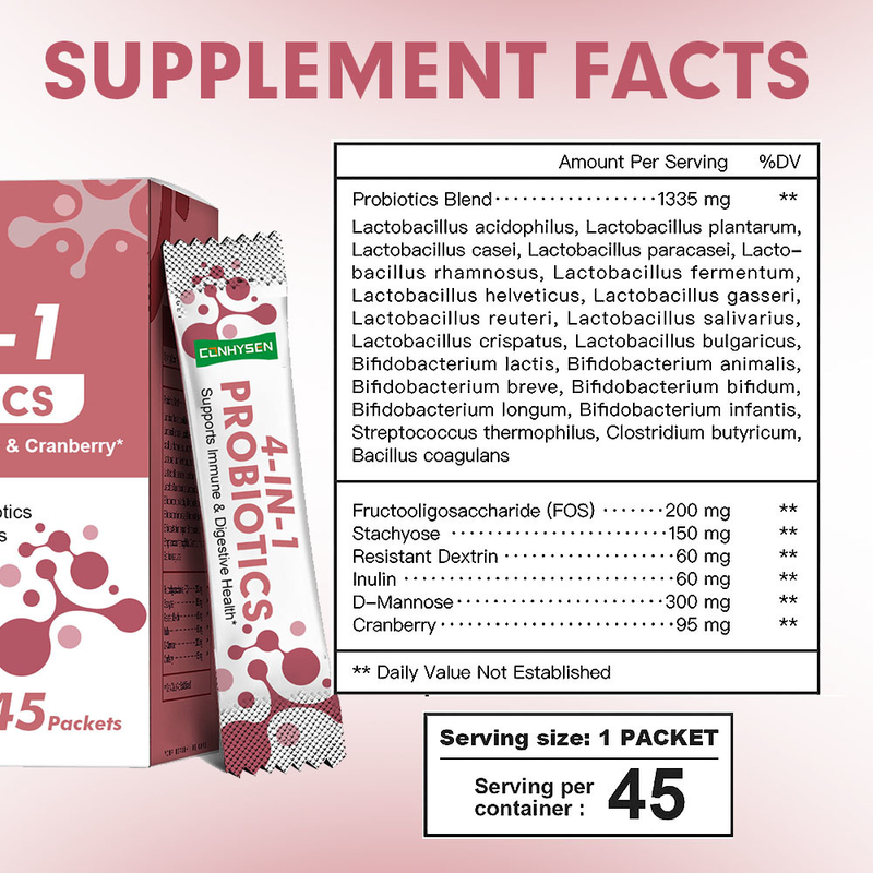 پودر پروبیوتیک ۴ در ۱ که توسطشرکت فناوری داروسازی گوانگدونگ کانگشنگدارای یک فرمول پروبیوتیک فعال انتخاب شده با اضافه کردن عصاره توت سیاه هستند. آنها می توانند به طور موثر رشد باکتری های مضر در ادراری را مهار کنند.حفظ تعادل میکرو اکولوژیکی ادراری، و به طور قابل توجهی خطر عفونت های دستگاه ادراری را کاهش می دهد.