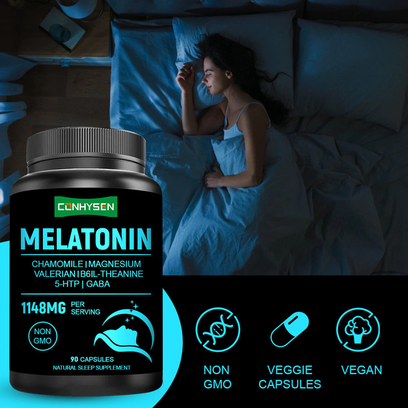 کپسول های ملاتونین سفارشی 1148 میلی گرم، کارخانه مستقیم، افزایش کیفیت خواب، قبل از خواب