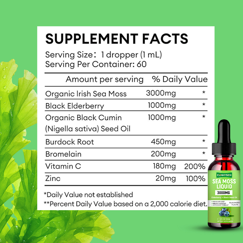 خزه دریایی ایرلندی ارگانیک، ویتامین C، elderberry سیاه، ریشه بابا آدم، زیره سیاه ارگانیک، بروملین، روی