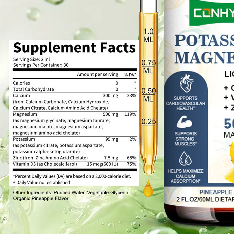 Potassium Magnesium Liquid Drops from Guangdong Kangsheng Pharmaceutical Technology Co., Ltd. uses scientific proportions to provide key nutritional support for the heart. Magnesium can help maintain normal heart rhythm, while potassium ions participate in electrical signal conduction in myocardial cells. The synergistic effect of the two can effectively improve cardiovascular function. Appropriate supplementation of potassium and magnesium can reduce the risk of arteriosclerosis and reduce the incidence of cardiovascular disease.