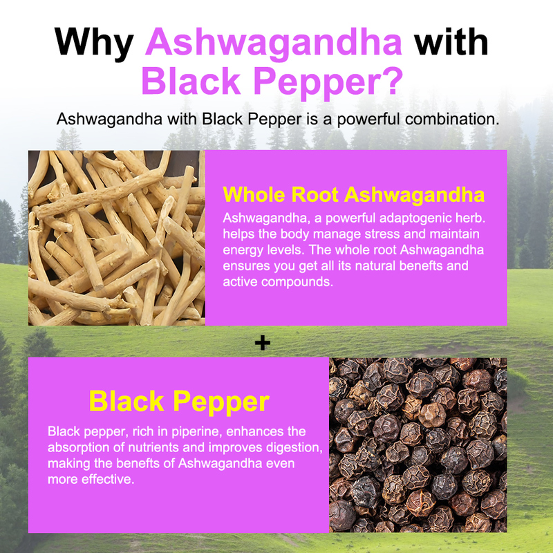 فلفل سیاه ارگانیک، عصاره ریشه آشواگاندا، صمغ اقاقیا